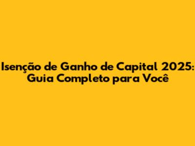 Isenção De Ganho De Capital 2025: Guia Completo