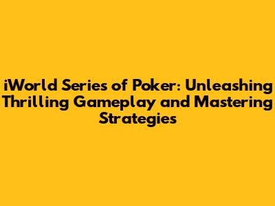 IWorld Series Of Poker: Thrilling Gameplay & Strategies