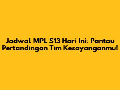 Apa kabar, guys? Buat kalian para penggemar esports Mobile Legends sejati, pastinya udah nggak sabar dong nungguin aksi seru di MPL Indonesia Season 13, alias MPL S13! Nah, buat kalian yang pengen tetep update dan nggak ketinggalan momen penting, artikel ini bakal jadi panduan lengkap kalian. Kita bakal kupas tuntas jadwal MPL S13 hari ini, lengkap dengan info tim yang bertanding, jam tayang, dan pastinya tips biar nonton makin asik. Jadi, siap-siap aja, siapkan cemilan favorit, dan mari kita selami keseruan MPL S13 bersama-sama!