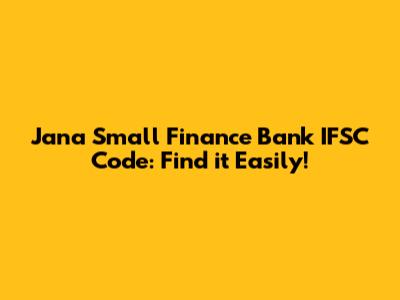 Jana Small Finance Bank IFSC Code: Find It Easily!