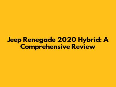 Jeep Renegade 2020 Hybrid: A Comprehensive Review
