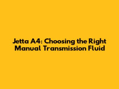 Choosing the right transmission fluid for your Jetta A4 is crucial for maintaining its performance and longevity. By understanding the fluid specifications, selecting a high-quality fluid, and performing regular maintenance, you can keep your Jetta shifting smoothly for years to come. Remember to always consult your owner's manual or a trusted mechanic if you have any questions or concerns. Happy driving!