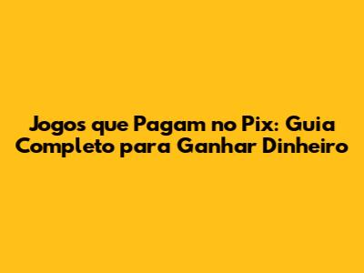Jogos Que Pagam No Pix: Guia Completo Para Ganhar Dinheiro