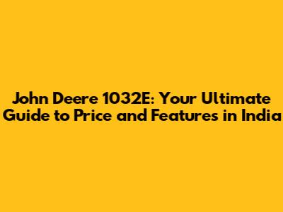 John Deere 1032E: Price, Features & Where To Buy In India