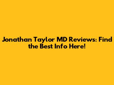 Jonathan Taylor MD Reviews: Find The Best Info Here!
