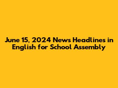 June 15, 2024: School Assembly News Headlines