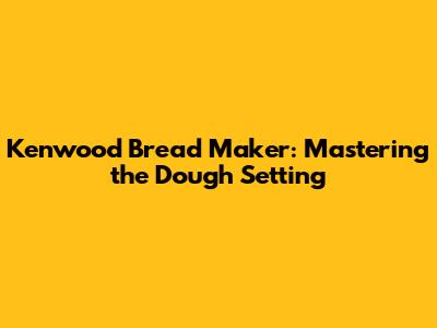 Kenwood Bread Maker: Mastering The Dough Setting