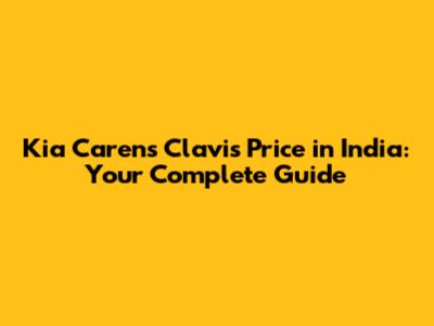 Kia Carens Clavis Price In India: Your Complete Guide