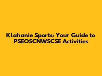 Klahanie Sports: Your Guide To PSEOSCNWSCSE Activities
