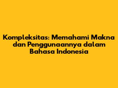 Kompleksitas: Memahami Makna Dan Penggunaannya Dalam Bahasa Indonesia