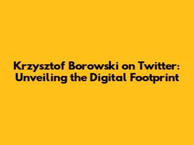 Krzysztof Borowski On Twitter: Latest News & Insights