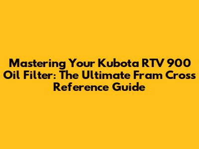 Mastering Your Kubota RTV 900 Oil Filter: The Ultimate Fram Cross Reference Guide
