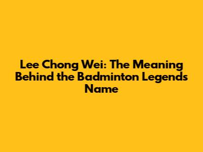 Lee Chong Wei: The Meaning Behind The Badminton Legend's Name