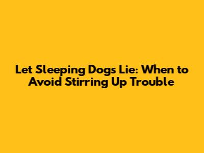 Alright guys, let's talk about that age-old saying: "Let sleeping dogs lie." We've all heard it, right? It's that classic piece of wisdom that basically tells us to mind our own business and not poke the bear, so to speak. In essence, it's about recognizing when a situation is best left undisturbed. Think about it – sometimes, bringing up old issues, dredging up past grievances, or even just asking too many questions can create more problems than it solves. It’s like gently nudging a sleepy dog; it might just wake up and decide to bark, or worse. This concept is super relevant in so many areas of life, from personal relationships to professional settings and even historical contexts. Understanding when to apply this wisdom can save you a whole heap of trouble and heartache. It’s not about being passive or a pushover, oh no. It’s about being strategic, about picking your battles, and about knowing when the potential fallout from stirring things up just isn’t worth the potential reward, if there even is one. Sometimes, the status quo, even if imperfect, is better than the chaos that might ensue from trying to change it or uncover truths that are best left buried.