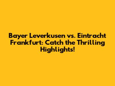 Leverkusen Vs. Frankfurt: Must-See Highlights!