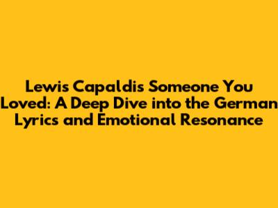Hey everyone! Ever found yourself completely captivated by a song? That's definitely how many of us feel about Lewis Capaldi's mega-hit, "Someone You Loved." It's a tune that just grabs you, right? But what about understanding the song in different languages? Today, we're diving deep into the German translation of "Someone You Loved," exploring the lyrics, and uncovering the emotional core that makes this song so universally loved. Ready to explore the meaning of the song? Let's get started, guys!