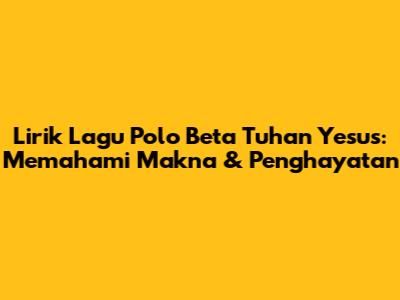 Lirik Lagu Polo Beta Tuhan Yesus: Makna & Penghayatan