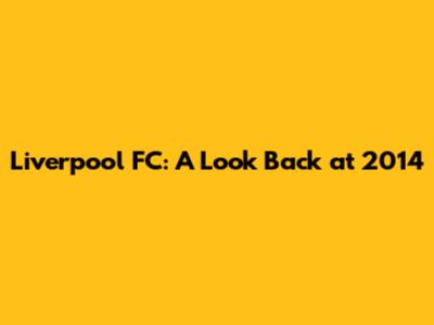 Liverpool FC: A Look Back At 2014
