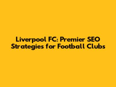 Liverpool FC: Premier SEO Strategies For Football Clubs