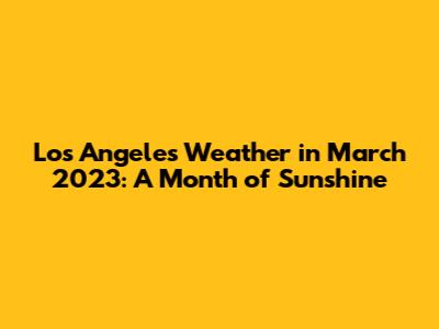 Hey there, weather enthusiasts! Let's dive into the Los Angeles weather in March 2023. March in the City of Angels is typically a transition month, moving from the cooler, wetter winter season towards the warmer, sunnier days of spring. You can expect a delightful mix of conditions, making it an excellent time to visit or enjoy the outdoors. We'll explore the temperatures, rainfall, and overall climate you could anticipate, helping you plan your activities and pack accordingly. So, grab your sunglasses and let's get started!