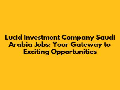 Lucid Investment Company: Saudi Arabia Job Opportunities