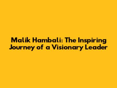 Malik Hambali: The Inspiring Journey Of A Visionary Leader