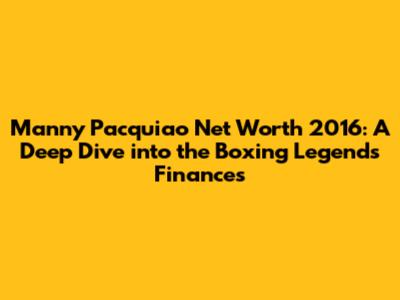 So, what was Manny Pacquiao's estimated net worth in 2016? Considering all the factors discussed—boxing earnings, endorsements, business ventures, and investments—experts estimate that Manny Pacquiao's net worth in 2016 was approximately $220 million. This figure reflects his accumulated wealth from his successful boxing career, strategic business decisions, and lucrative endorsement deals. His consistent performance in the ring, combined with his ability to leverage his brand for commercial opportunities, contributed to his impressive net worth. It is important to note that this is an estimated figure, and the actual net worth may vary depending on the valuation of his assets and liabilities. However, it provides a reasonable estimate based on publicly available information and industry analysis. Pacquiao's financial success is a testament to his hard work, discipline, and business acumen. His ability to manage his wealth effectively and diversify his income streams has allowed him to maintain his position as one of the wealthiest athletes in the world. Furthermore, Pacquiao's philanthropic activities should also be considered when evaluating his overall financial impact. His commitment to giving back to his community has made a significant difference in the lives of countless individuals and communities. While his net worth represents his financial success, his philanthropic contributions reflect his personal values and his desire to make a positive impact on society. This comprehensive overview provides a clear understanding of Pacquiao's financial status in 2016 and highlights the various factors that contributed to his impressive net worth. It showcases his achievements both inside and outside the boxing ring, making him a true icon in the world of sports and business. This figure represents the culmination of his hard work, strategic decisions, and diversified income streams.