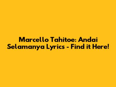Marcello Tahitoe: Andai Selamanya Lyrics - Find It Here!