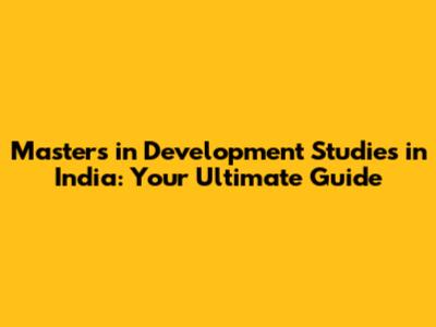 Master's In Development Studies In India: A Comprehensive Guide