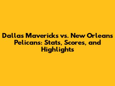 Mavericks Vs. Pelicans: Stats, Scores, And Highlights