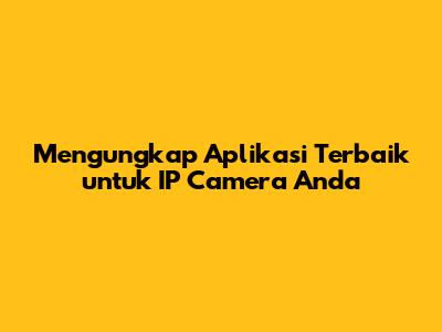 Mengungkap Aplikasi Terbaik Untuk IP Camera Anda