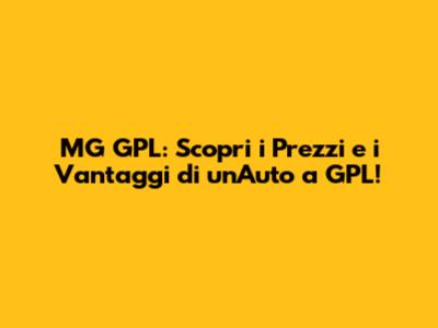 Quanto Costa un'MG GPL? Analisi dei Prezzi e delle Variabili!