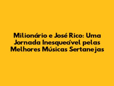 Milionário E José Rico: As Melhores Músicas Sertanejas