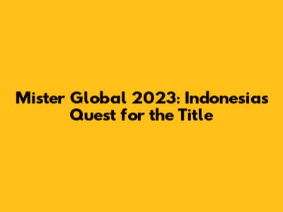 Hey everyone! Let's dive into the glitz and glamour of the Mister Global 2023 competition, with a special focus on Indonesia's journey. It's an exciting time, filled with anticipation and national pride, as we follow our representatives in their quest to bring home the coveted title. We'll be covering all the key aspects of the competition, from the preliminary rounds to the grand finale, and everything in between. So, grab a seat, relax, and let's explore the world of Mister Global 2023 and Indonesia's involvement in it. This international male beauty pageant, which celebrates not only physical attractiveness but also intelligence, personality, and social responsibility, has captured the hearts of many worldwide.