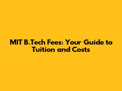 MIT B.Tech Fees: Your Guide To Tuition And Costs