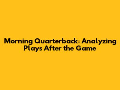 Morning Quarterback: Analyzing Plays After The Game