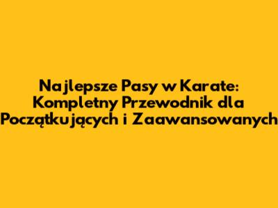 Najlepsze Pasy W Karate: Kompletny Przewodnik Dla Początkujących I Zaawansowanych
