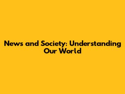 News And Society: Understanding Our World