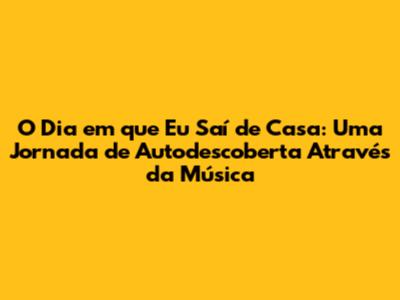 O Dia em que Eu Saí de Casa é uma música que toca o coração e inspira a alma. Ela nos lembra da importância de valorizar cada momento, de seguir nossos sonhos e de nunca ter medo de trilhar nosso próprio caminho. Se você, assim como eu, está em busca de autodescoberta, essa música é um hino!