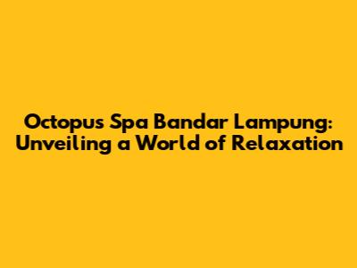 Octopus Spa Bandar Lampung: A Guide To Relaxation