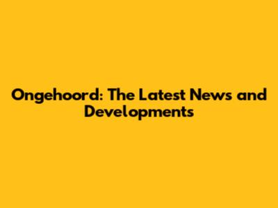 Ongehoord: The Latest News And Developments