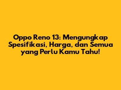 Hai guys! Kalian pasti penasaran banget kan sama Oppo Reno 13 yang kabarnya bakal nge-hits banget di pasaran? Nah, di artikel ini, kita bakal kupas tuntas semua yang perlu kalian tahu tentang HP kece ini: mulai dari spesifikasi lengkapnya, perkiraan harga, sampai fitur-fitur unggulan yang bikin Oppo Reno 13 beda dari yang lain. Yuk, simak terus!