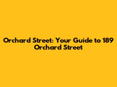 Orchard Street: Your Guide To 189 Orchard Street