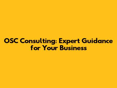 OSC Consulting: Expert Guidance For Your Business