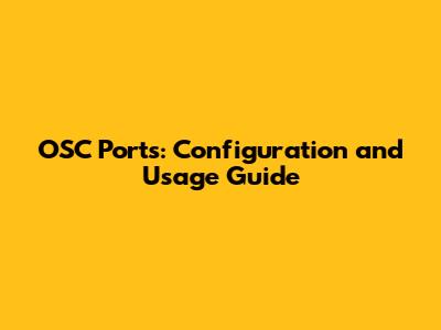 OSC Ports: Configuration And Usage Guide