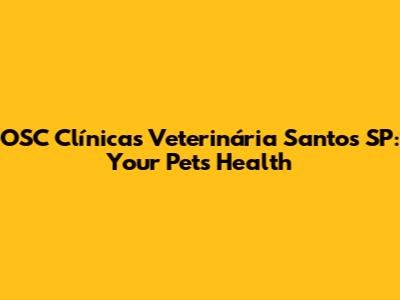 OSC Veterinary Clinics In Santos SP: Your Pet's Health