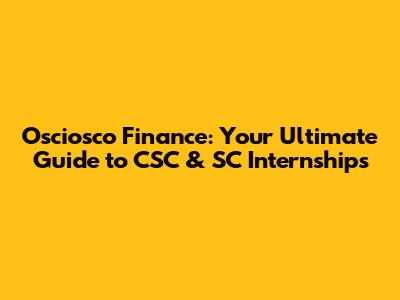 Osciosco Finance: Your Guide To CSC & SC Internships