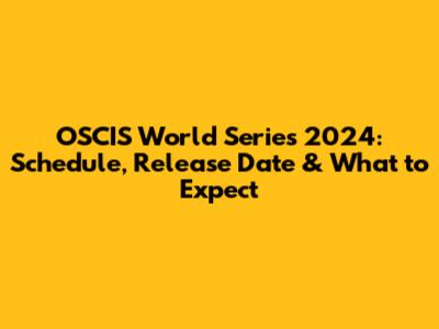 OSCIS World Series 2024: Schedule, Release Date & What To Expect