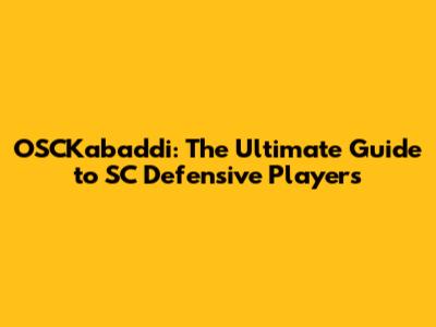 OSCKabaddi: The Ultimate Guide To SC Defensive Players