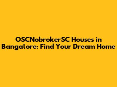 OSCNobrokerSC Houses In Bangalore: Find Your Dream Home